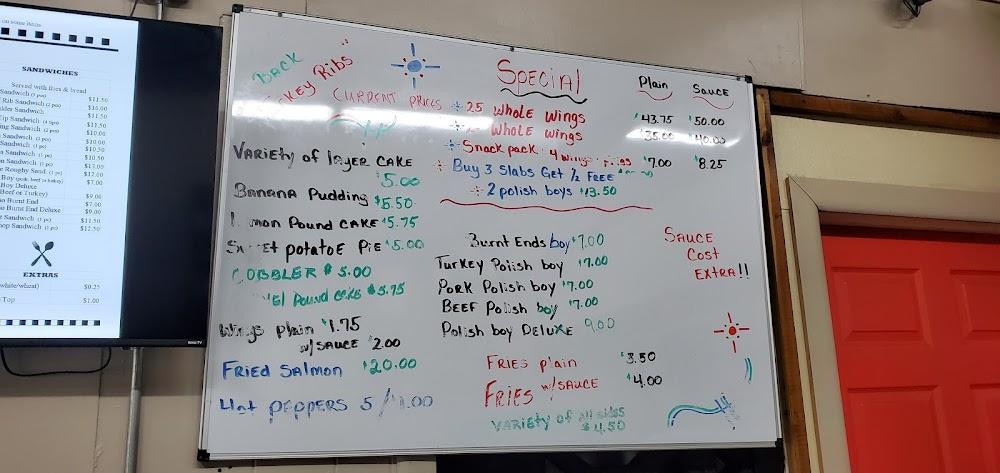 The menu at Mt Pleasant Bar-B-Q showcases a range of classic barbecue favorites, making it a delightful destination for meat lovers. Highlighted items include tantalizing rib dinners, crispy chicken wings, and flavorful fish plates like Whiting and Perch. Additionally, diners can savor delicious sandwiches, such as the rib sandwich and tip sandwich. Sides, including yams and coleslaw, complement the main dishes. The dessert selection features sweet potato pie, pound cake, and other seasonal options. Priced affordably, the menu caters to various tastes without compromising quality. Overall, the culinary offerings capture the heart and soul of traditional barbecue culture.